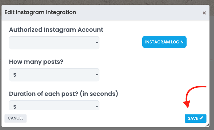 Your Instagram integration is now reauthorized! If you haven’t already, you can add the template to your live playlist.