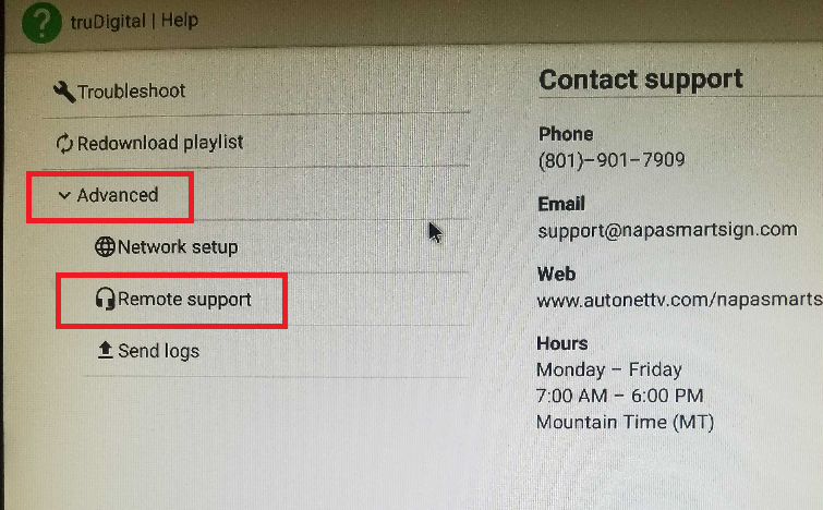 First thing we'd like to verify, is that the device is connected to the internet. If the device has checked in from the Player Status page on the website, within the past 15 min and has a green dot next to it, that is a good indication that it is. You'll need to be in front of where the device is located with the remote to the device.