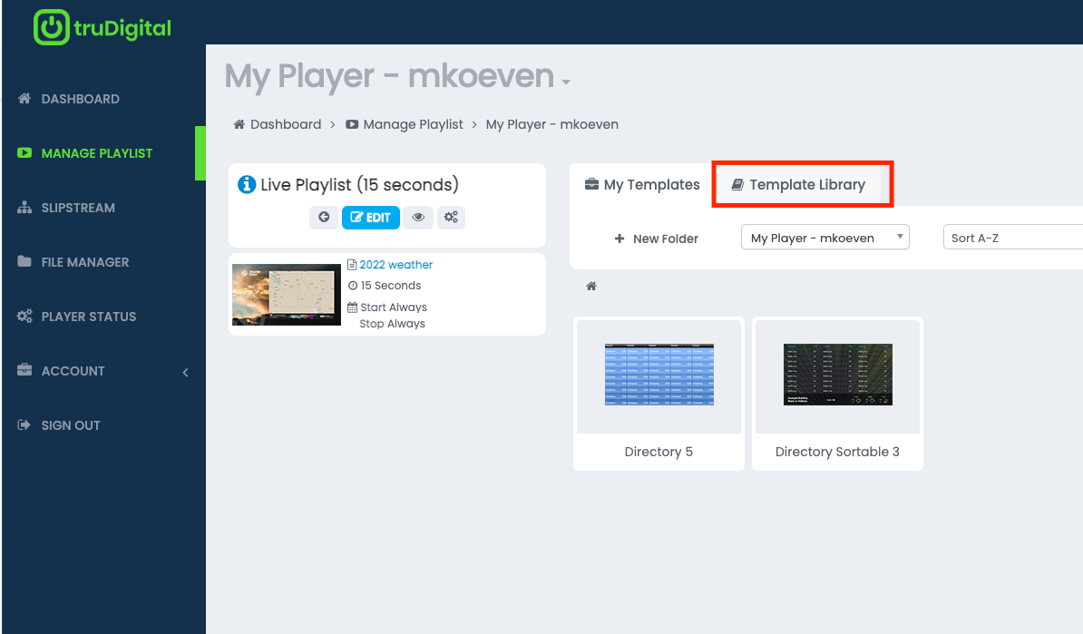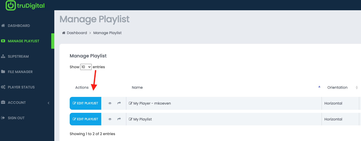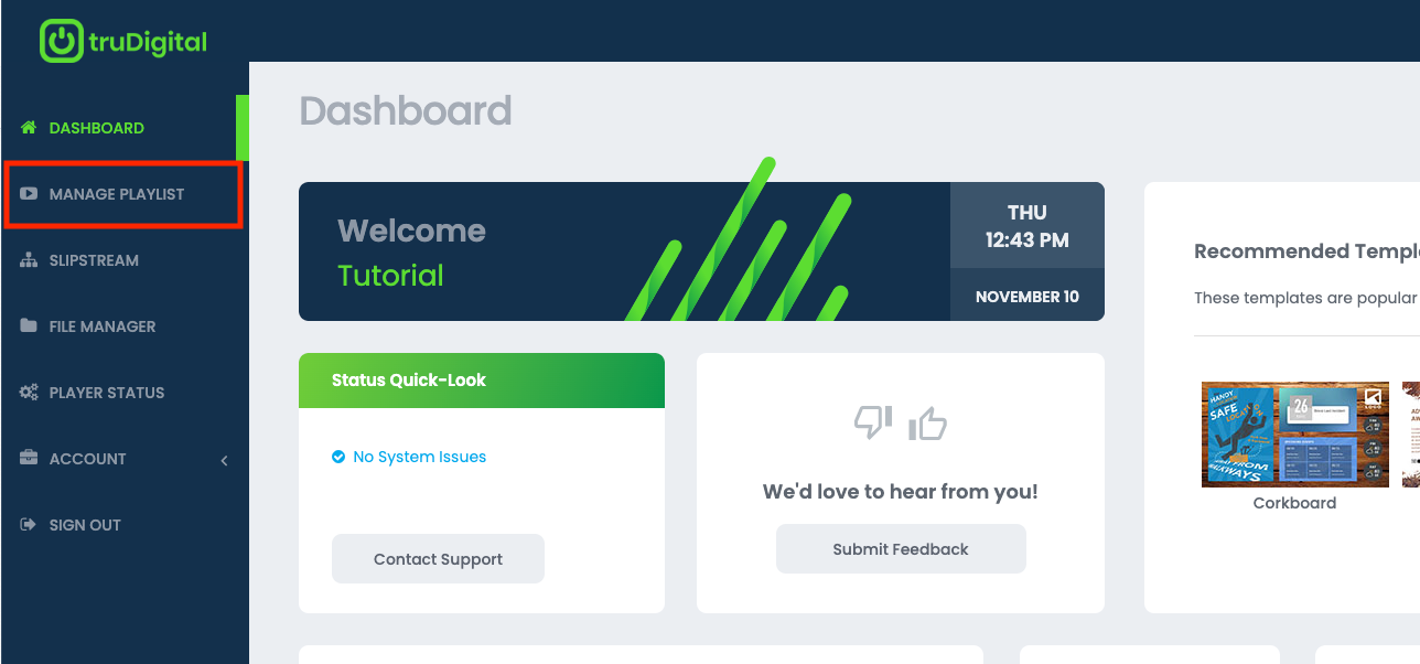 Step 1 - From your Dashboard, select "Manage Playlist" on the left