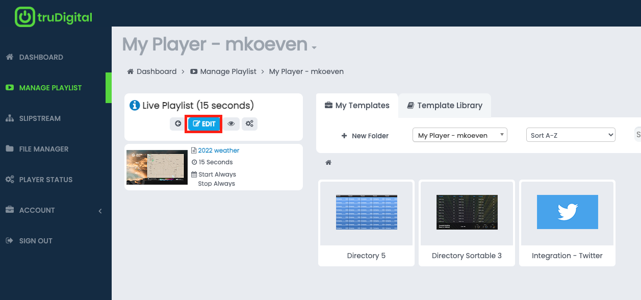 Now the Integration for Twitter is ready to display in your Playlist, your player will automatically download the new content within the next 10-15 minutes