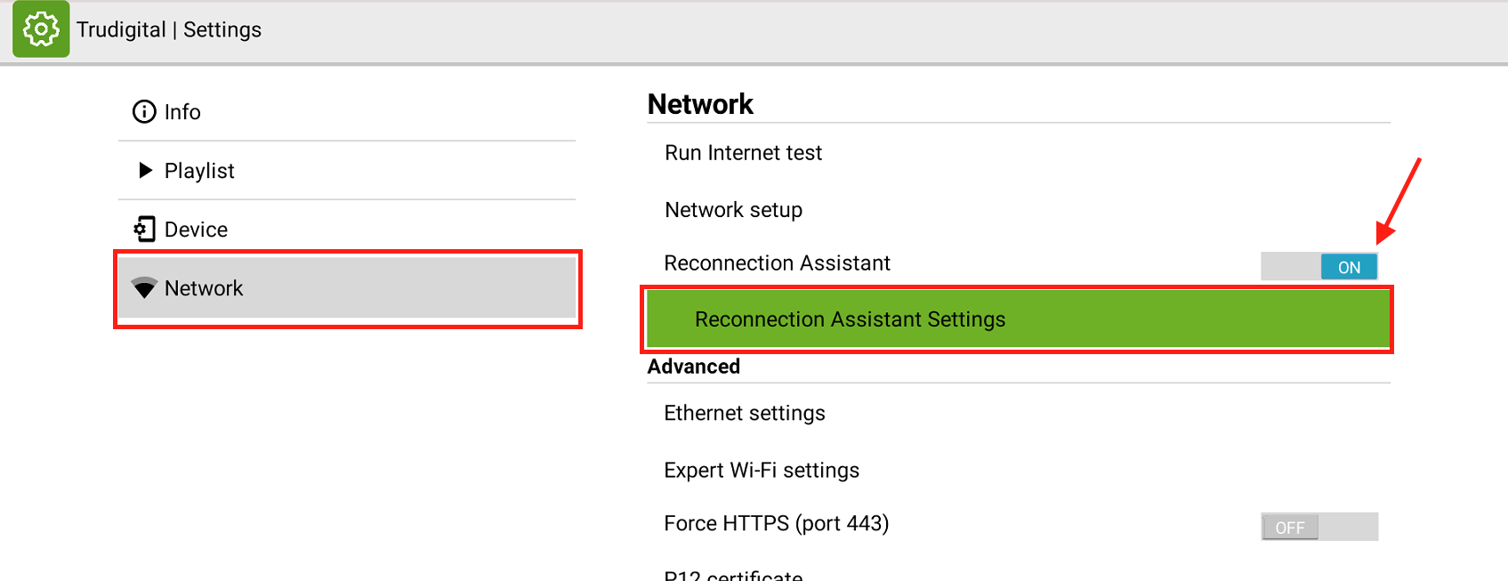 STEP 2: click on Network then click on Reconnection Assistant to turn it ON, now select Reconnection Assistant Settings