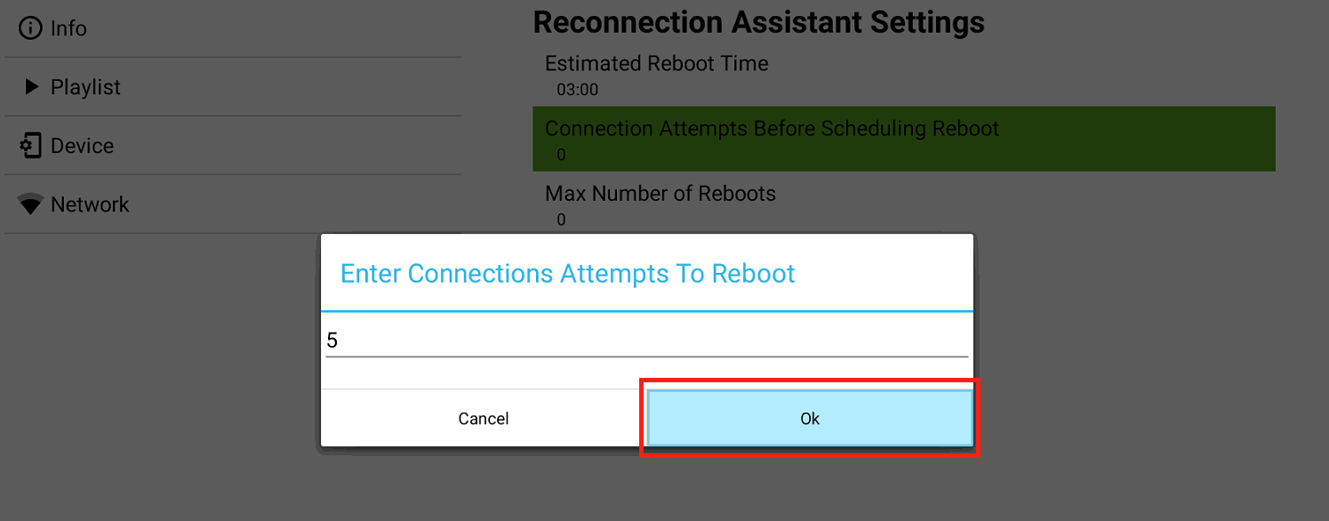 STEP 3: click on "Connection Attempts before Scheduling Reboot", erase the 0 and change it to 5 then click the Return button
