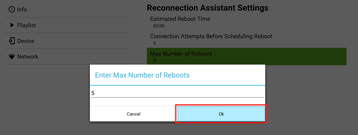STEP 4 : click on "Max Number of Reboots", erase the 0 and change it to 5 then click on the Return button