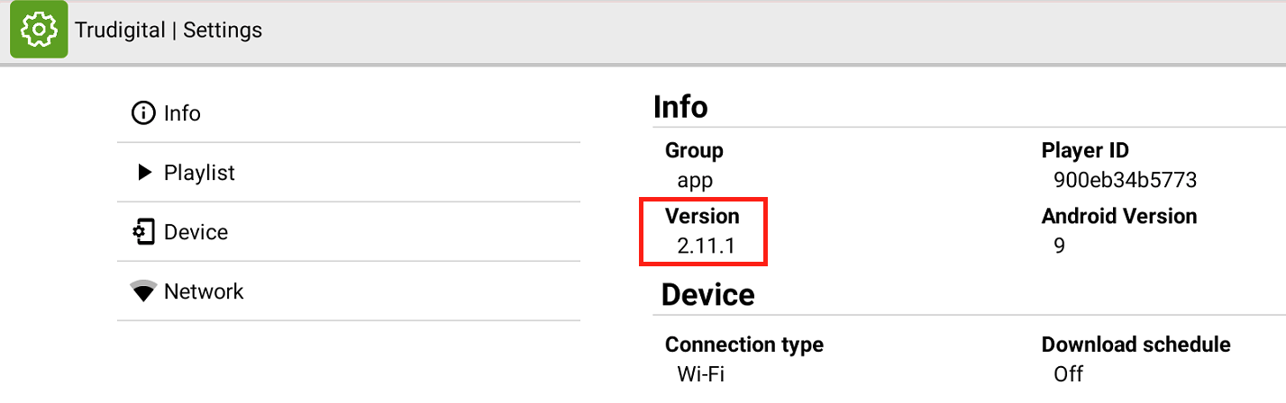 Before you follow the next steps, confirm your player's Version shows as 2.11.1 or above- if it does not, you will need to follow these separate steps to update the Software Version before continuing the steps below