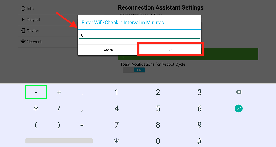 STEP 5 : click on "WiFi Check Internal In Minutes", erase the 0 and change it to 10 then click on the Return button