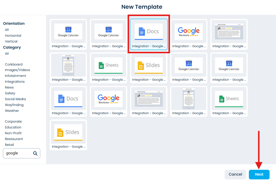 STEP 3: Find and select "Integration - Google Docs", click "Next"