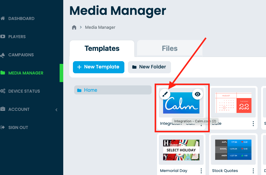 Now you'll see the Integration under your Templates, you just need to edit it to select which video you want it to display.